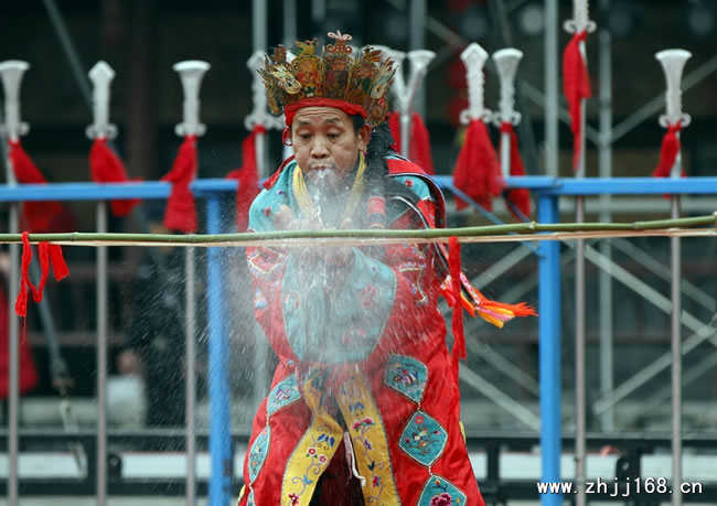 龙文高,苗族傩技(巫技)大师,以苗巫著称一方。他能用一根小竹,一破为二,让两名观众分开拿在左右手上,通过苗族傩戏大师作戏法,让分开的竹子重合或再分开……神秘莫测,让你遐想不断